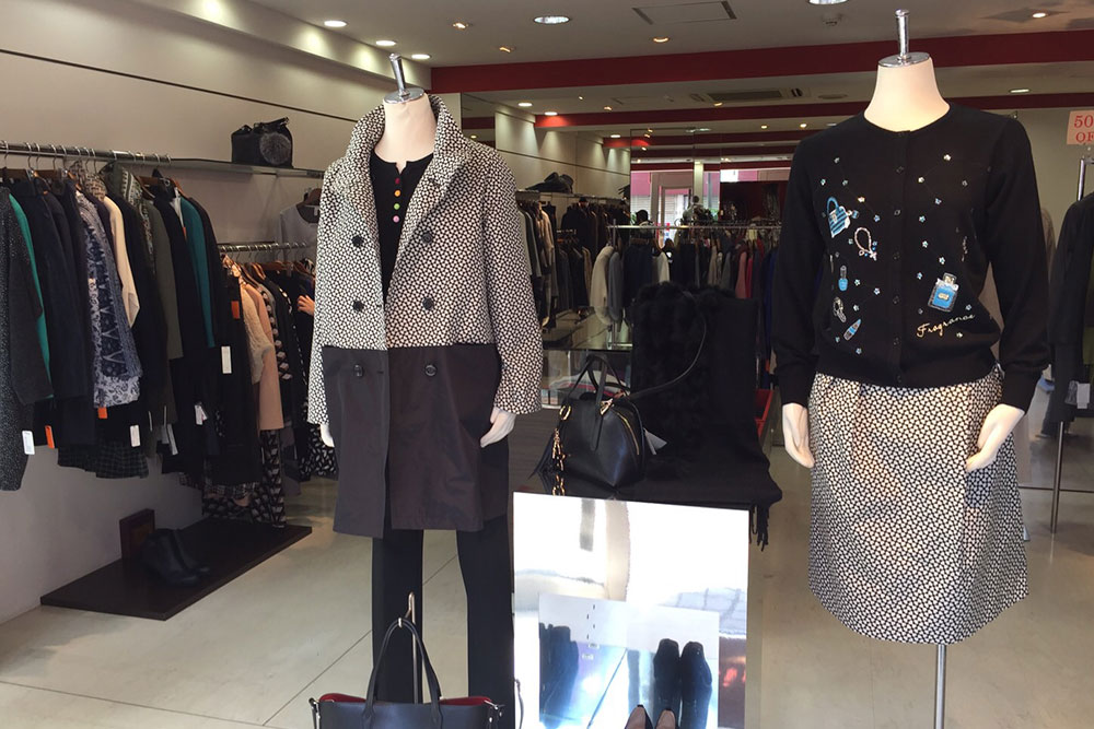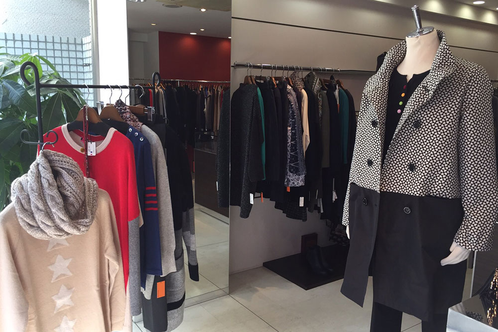 大岡山駅より徒歩5分、商店街にスタイリッシュにたたずんでおります。 20代からミセスまで幅広い商品を揃えております。